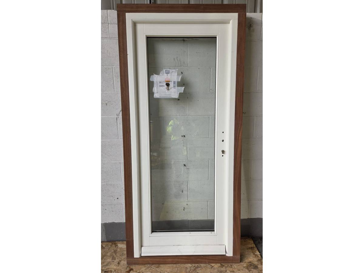 • This is a white finished door, within a unfinished sapele outer lining.
