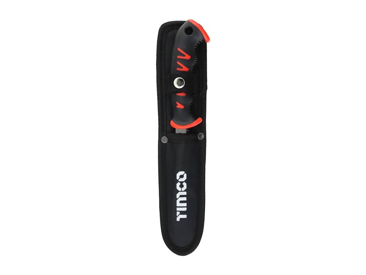 • Extra sharp teeth and pointed end for piercing plasterboard. Large smooth end pad facilitates pushing and twisting the blade through plasterboard. 1.5mm extra thick blade. Heavy duty, hardened and tempered steel blade and protective holster. Excellent for wood, plastic and drywall cutting.