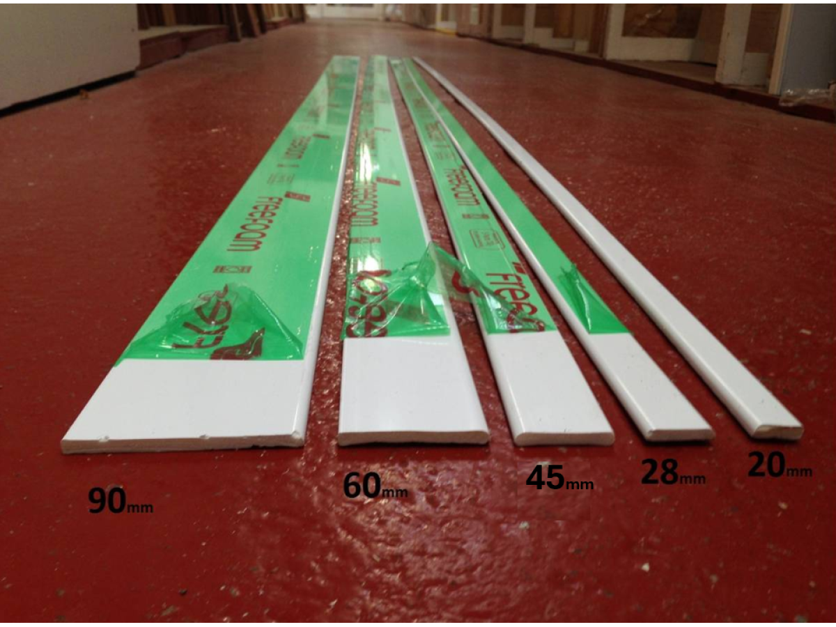 • The 28mm D mould has a round running down both long edges, while the architrave 45mm, 65mm, 95mm, 25mm and 20mm cloaking fillet is just rounded on one  long edge.